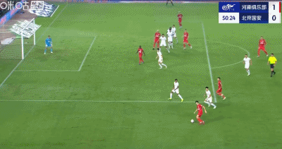 第40分钟,钟义浩补射发生折射破门,河南1-0领先国安!